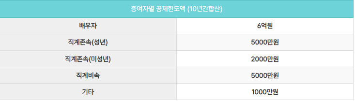 º 혼인과 출산에 대한 공제는 횟수는 상관없지만 총한도액은 1억입니다. 두 가지를 합산할 때 1억 임을 유의해야 합니다.